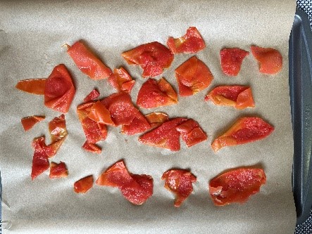 - Peel the tomato skins and set aside for later use.