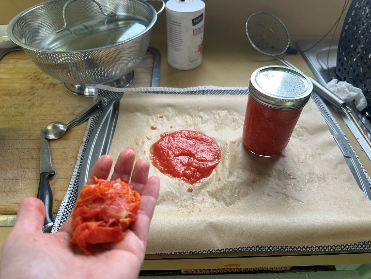 - Alternatively, I process the tomato skins and other tomato remains through a food mill and dehydrate the remains to produce tomato paste. (See Figure 2.)