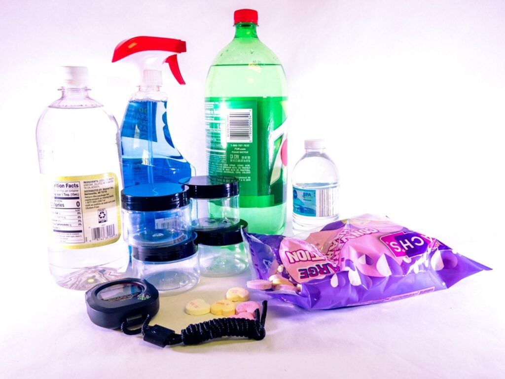 Before you begin, make sure you have an adult to help you gather all of the supplies you’ll need to conduct and carry out this investigation. You’ll want to use a variety of different liquids for this activity. We recommend using water, white vinegar, household cleaner, and clear soda. You could also try other options such as dish soap, oil, juice, hydrogen peroxide, or rubbing alcohol. Whatever liquids you choose, note, it will be easiest to capture the dissolve rate in a clear or a lighter solvent.