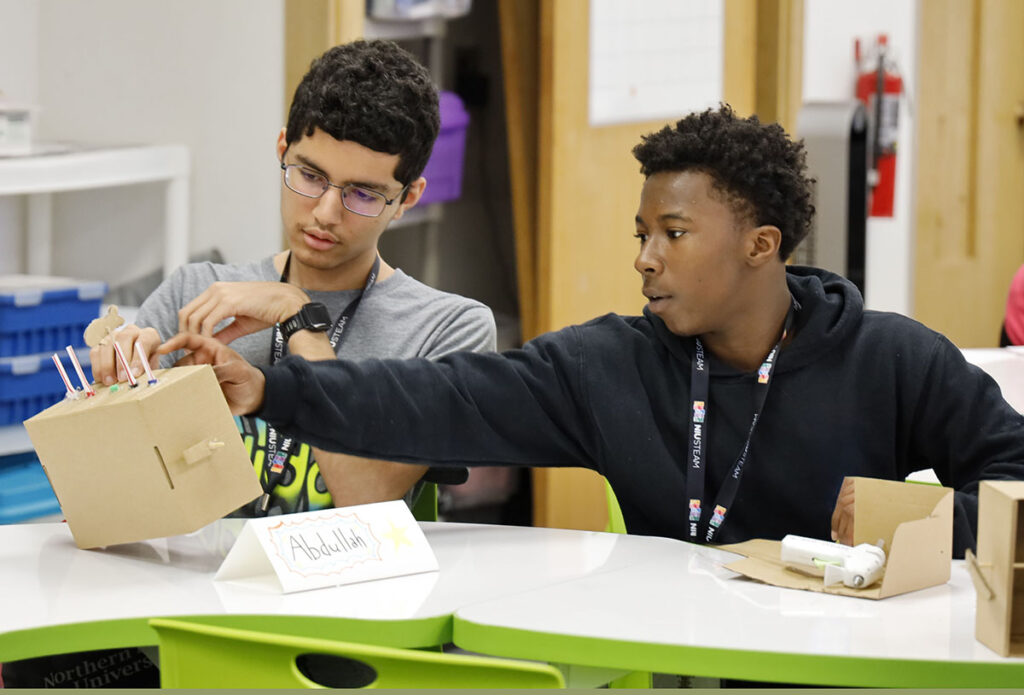 STEAM Studio is an afterschool STEAM-based exploration program offered to D428 students who qualify for free or reduced lunch or who reside in the Annie Glidden North neighborhood. It takes place on the campus of Northern Illinois University.