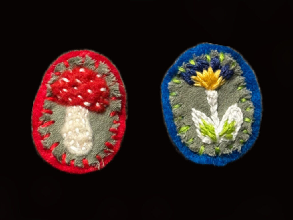 I’m a crafter currently fixated on embroidery. I use felt, scrap fabric and thrifted embroidery thread to make small colorful art pieces. I love embroidery because it encourages me to slow down and enjoy the process. I enjoy working with my hands and experimenting with color, which makes embroidery a fit. Over the summer I learned the Bayeux Tapestry stitch at an event led by the Barony of Carraig Ban of the Society for Creative Anachronism. Being reintroduced to embroidery encouraged me to practice and teach myself other stitches and techniques. Since then, I have created embroidered pins, a felt doll and other pieces. I encourage others to challenge their patience and try out a fiber art.