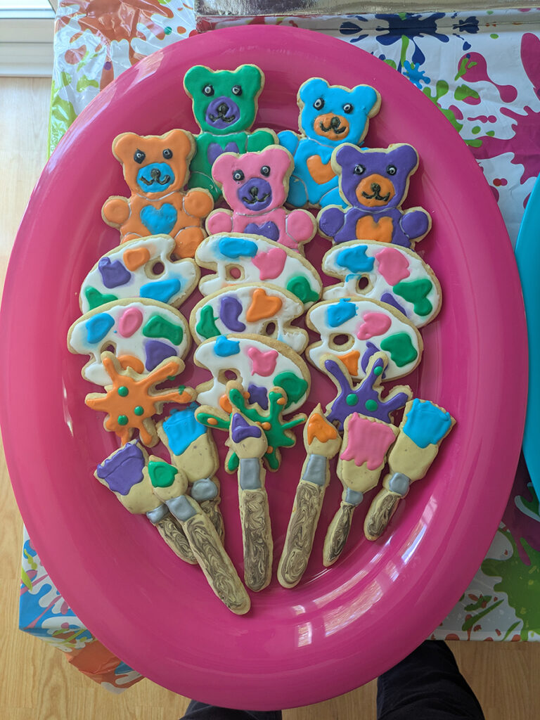 If someone has any inclination, I would suggest they give it a try. I’m not good at freehand drawing, but with decorating tools, I’m able to be successful. I ran a workshop once when I was a Jaycee where I taught members how to decorate cupcakes. A few of the participants pre-made frosting, and I baked the cupcakes. We made a few different designs, such as Cookie Monster, which had an easy piping technique. As an added bonus, we baked them for a charity fundraiser taking place at one of the local schools.  People were surprised at how successful they could be on their first try. I’ve even been able to teach my five-year-old niece how to help me make Swiss meringue buttercream!